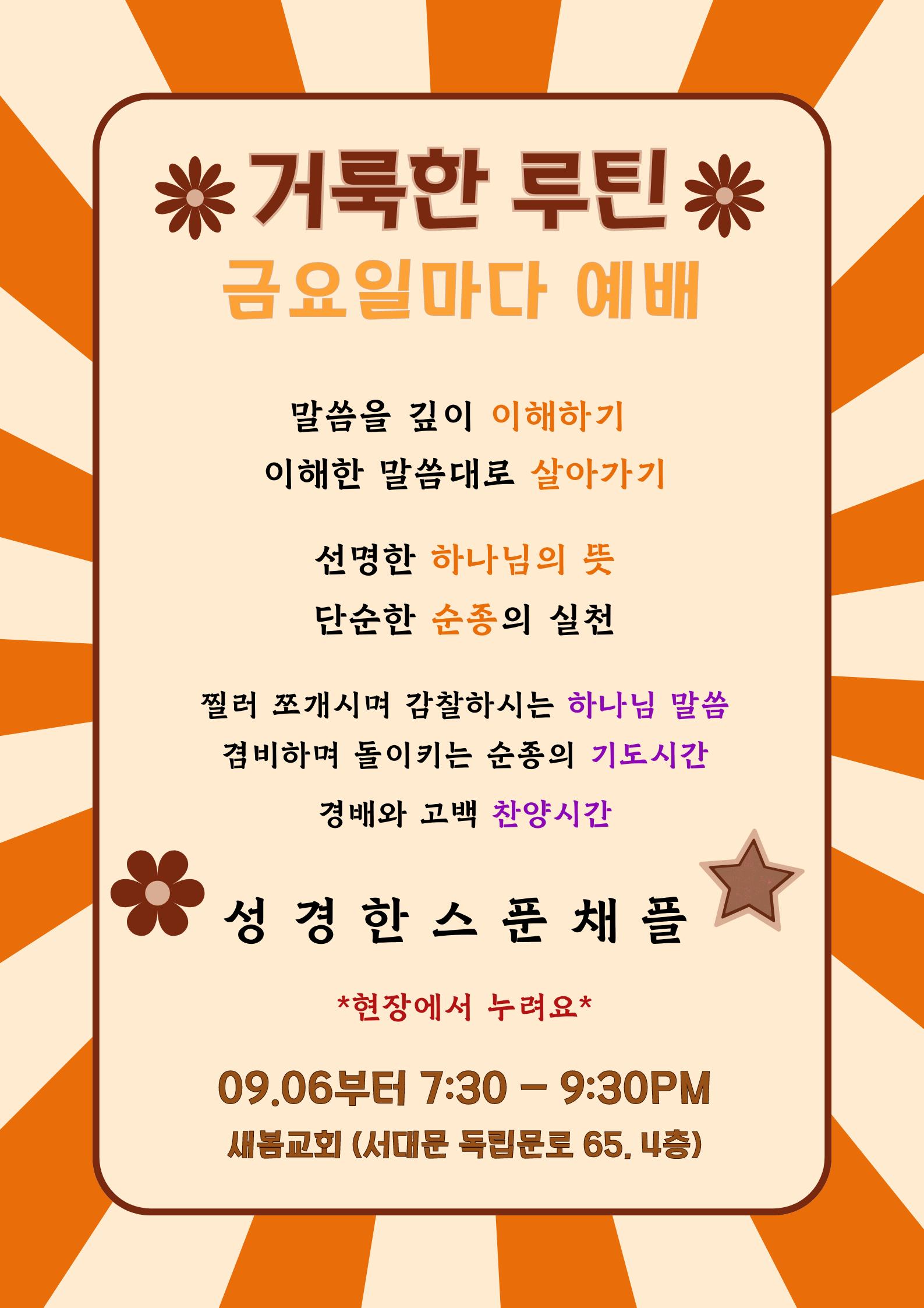 •당신을 성경한스푼 금요채플로 초대합니다.